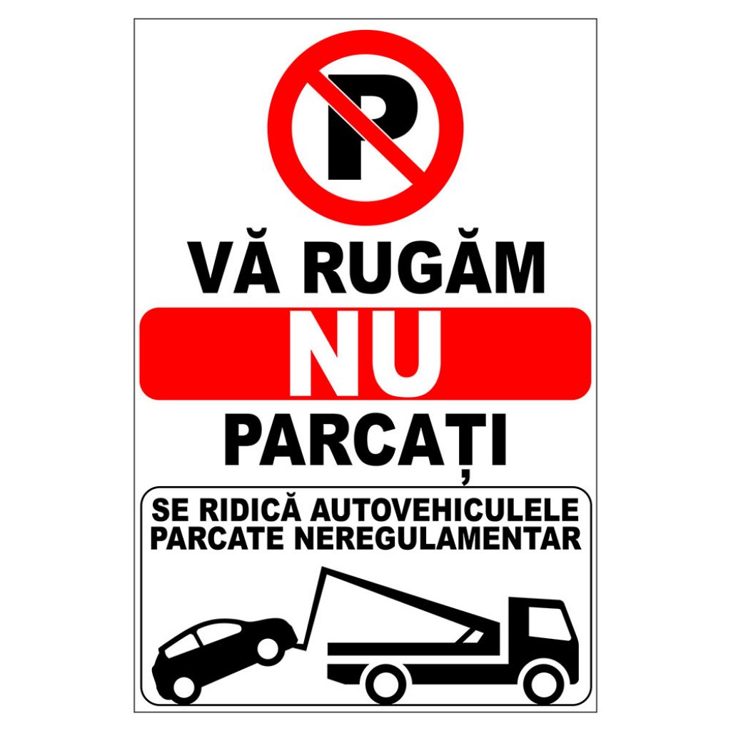 Placuta indicatoare parcare, va rugam nu parcati, se ridica autovehiculele parcate neregulamentar, Onsec, 200x300 mm, aluminiu compozit, 2 mm.