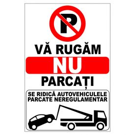 Placuta indicatoare parcare, va rugam nu parcati, se ridica autovehiculele parcate neregulamentar, Onsec, 200x300 mm, otel galvanizat, 0.5 mm.