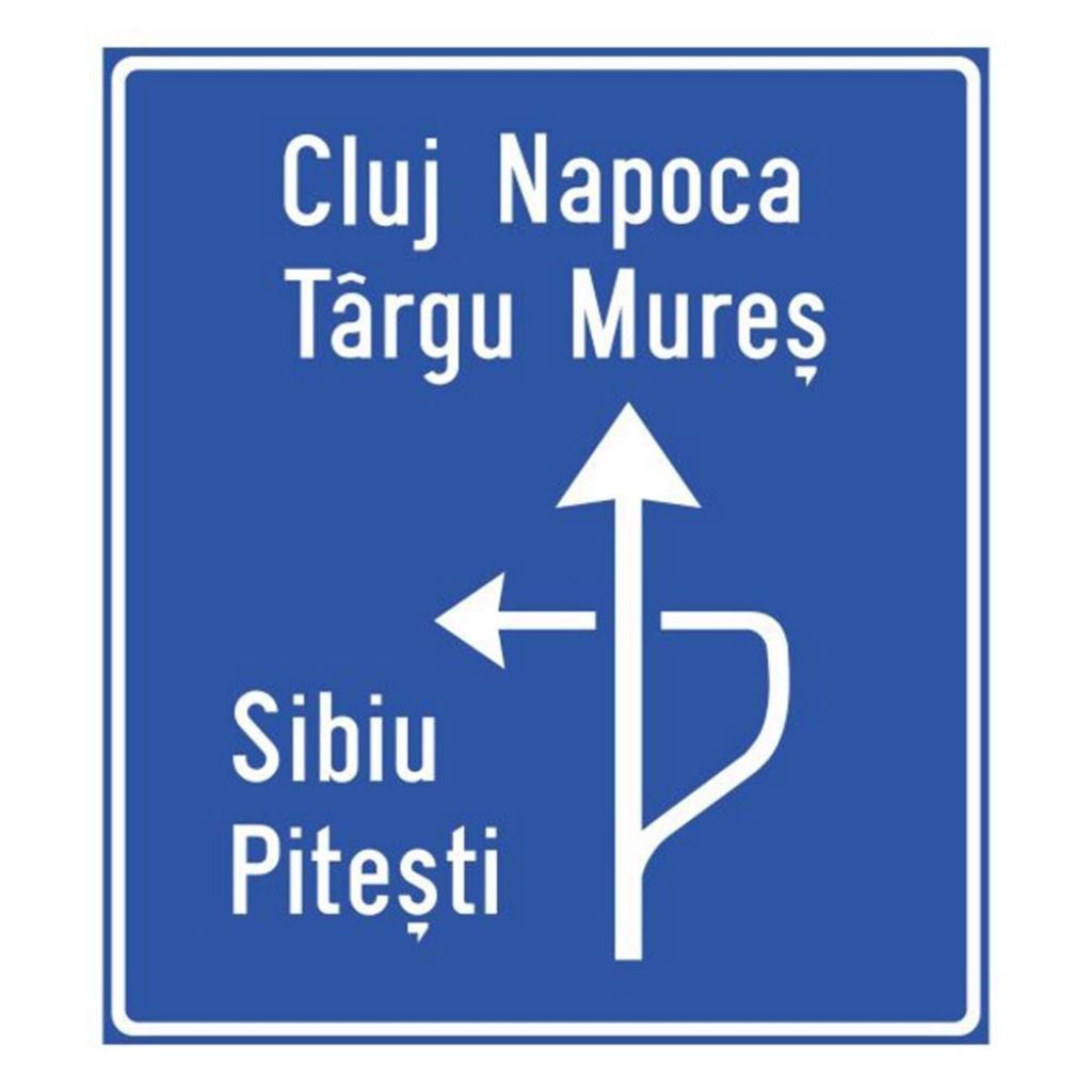 Presemnalizarea directiilor la o intersectie de drumuri din afara localitatilor F1, indicator de orientare