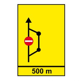 Se întâlnește pe sectoarele de drum unde se execută lucrări pe partea carosabilă. În acest caz, indicatorul rutier presemnalizează o rută ocolitoare aflată la 500 metri de indicator.