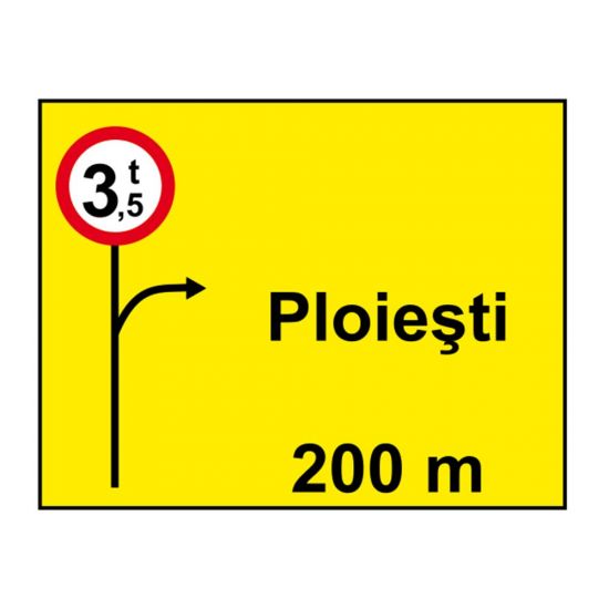 Se întâlnește pe sectoarele de drum unde se execută lucrări pe partea carosabilă. În acest caz, indicatorul rutier presemnalizează o rută ocolitoare pentru vehiculele cu masa mai mare de 3.5 tone.