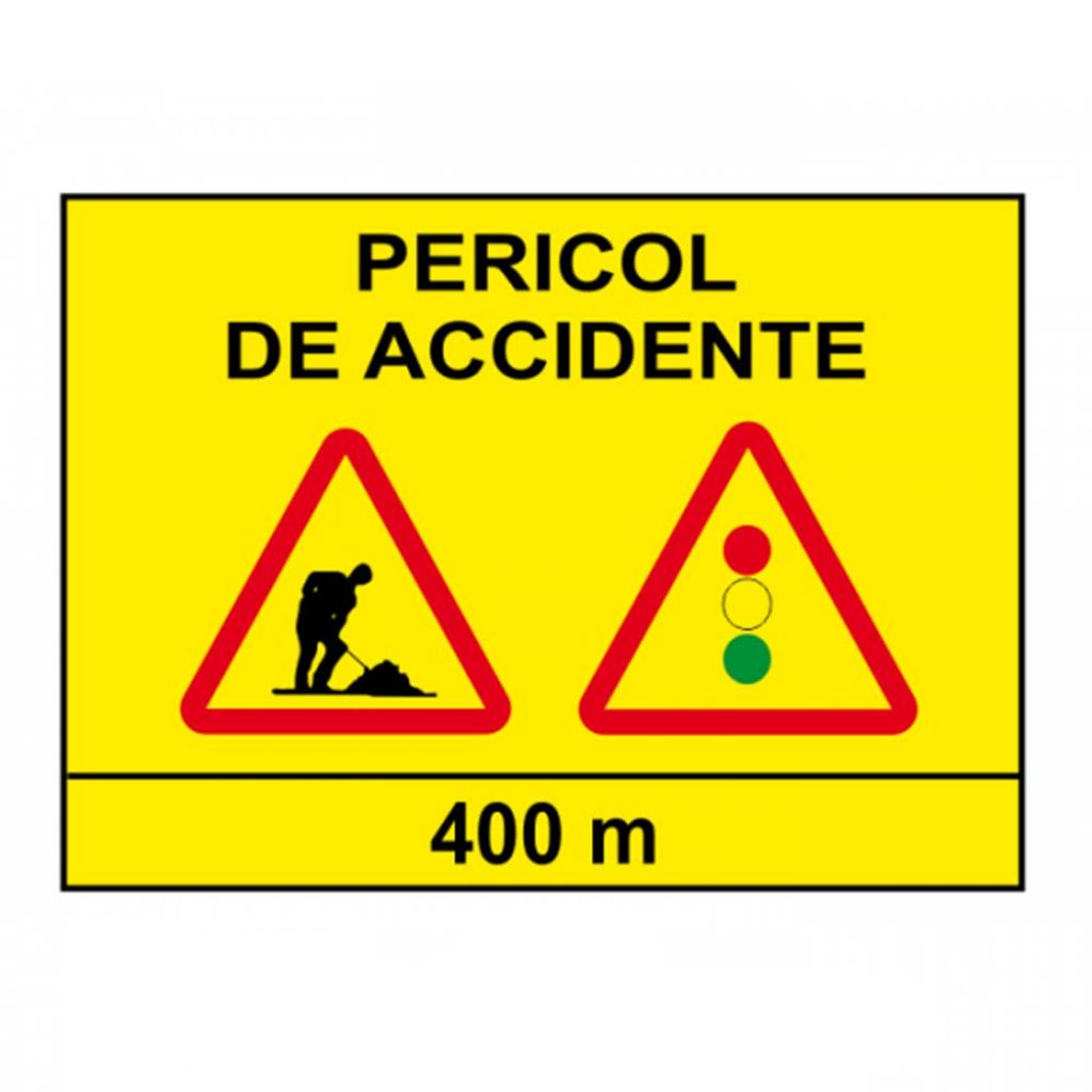 Presemnalizează un sector cu circulație alternantă, aflat la 400 metri de locul unde este amplasat indicatorul rutier. Deasemenea, indicatorul avertizează că urmează o intersecție semaforizată; pe partea carosabilă pot apărea persoane care lucrează la sectorul de drum respectiv și drumul prezintă pericol de accidente.