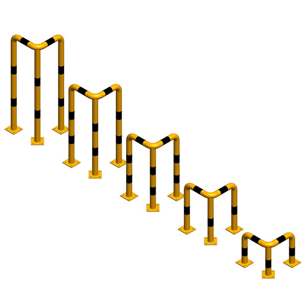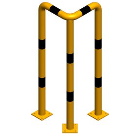 Protectie metalica pentru colt 800x800x800 mm din teava de 76.1x3 mm, Nentra, galbena, benzi negre reflectorizante