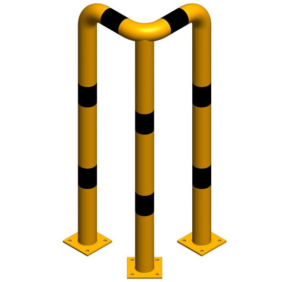 Protectii metalice / Coltare de protectie / Protectie metalica pentru colt 400x400x1200 mm din teava de 76.1x3 mm, Nentra, galbena, benzi negre reflectorizante