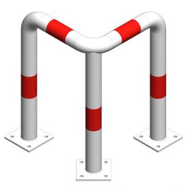 Protectii metalice / Coltare de protectie / Protectie metalica pentru colt 400x400x600 mm din teava de 60.3x3 mm, Nentra, alba, benzi rosii reflectorizante