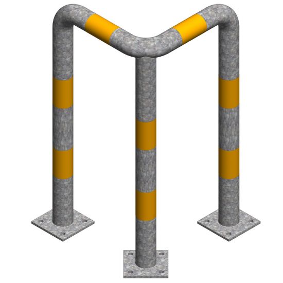 Protectie metalica pentru colt 800x800x800 mm din teava de 76.1x3 mm, Nentra, zincata, benzi galbene reflectorizante