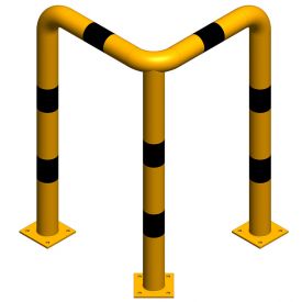 Protectie metalica pentru colt 800x800x800 mm din teava de 76.1x3 mm, Nentra, galbena, benzi negre reflectorizante
