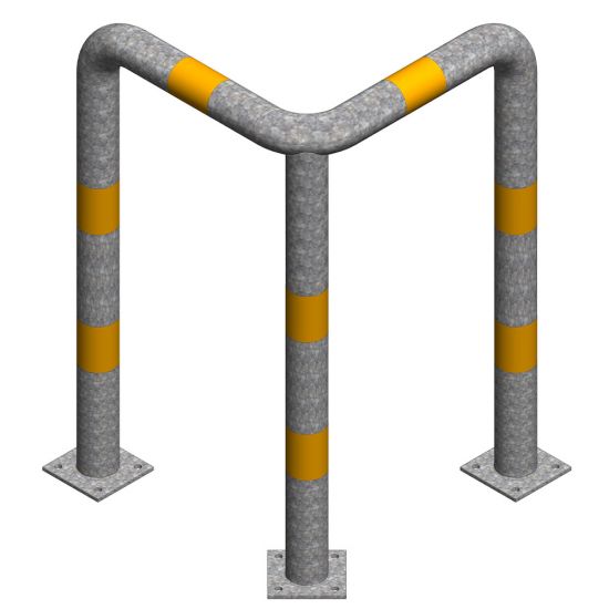 Protectii metalice / Coltare de protectie / Protectie metalica pentru colt 600x600x1000 mm din teava de 76.1x3 mm, Nentra, zincata, benzi galbene reflectorizante