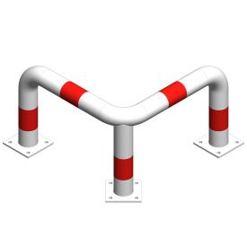 Protectii metalice / Coltare de protectie / Protectie metalica pentru colt 600x600x400 mm din teava de 76.1x3 mm, Nentra, alba, benzi rosii reflectorizante