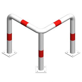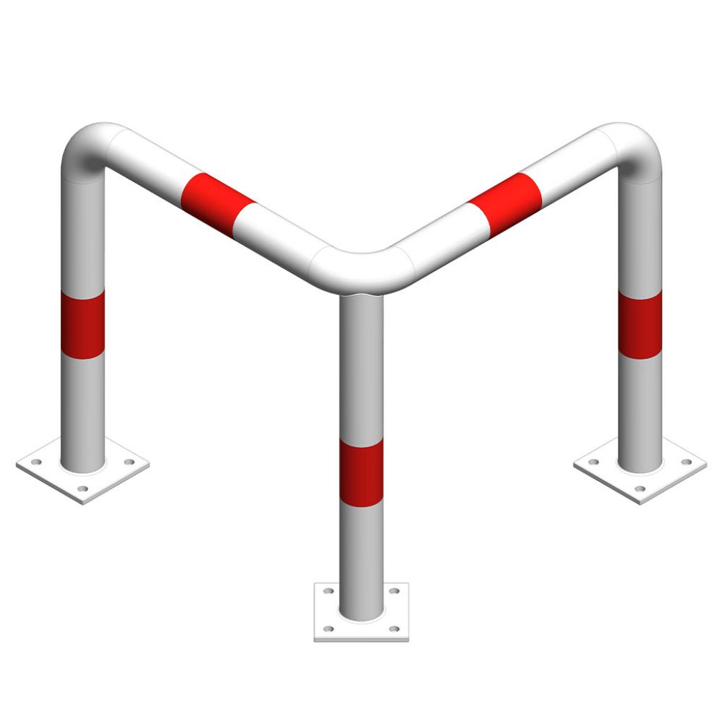 Protectii metalice / Coltare de protectie / Protectie metalica pentru colt 600x600x600 mm din teava de 60.3x3 mm, Nentra, alba, benzi rosii reflectorizante