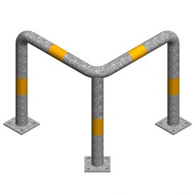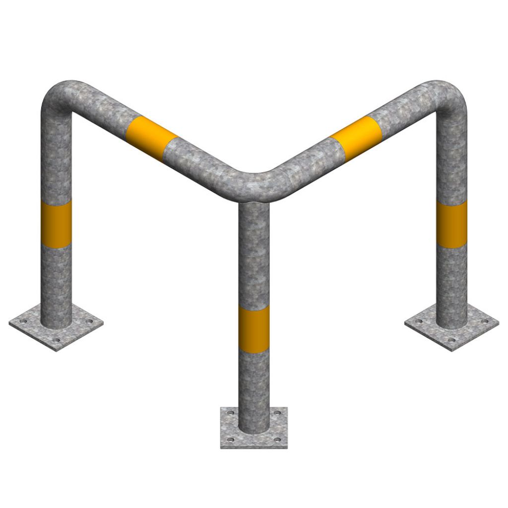 Protectie metalica pentru colt 800x800x800 mm din teava de 76.1x3 mm, Nentra, zincata, benzi galbene reflectorizante