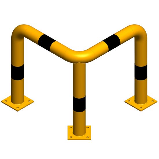 Protectie metalica pentru colt 800x800x800 mm din teava de 76.1x3 mm, Nentra, galbena, benzi negre reflectorizante