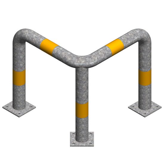 Protectii metalice / Coltare de protectie / Protectie metalica pentru colt 600x600x600 mm din teava de 76.1x3 mm, Nentra, zincata, benzi galbene reflectorizante