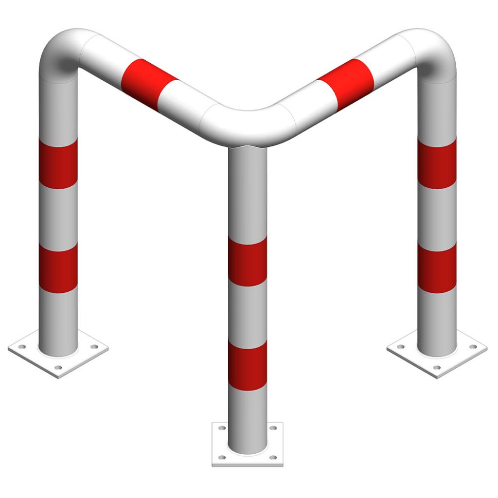 Protectie metalica pentru colt 800x800x800 mm din teava de 76.1x3 mm, Nentra, alba, benzi rosii reflectorizante