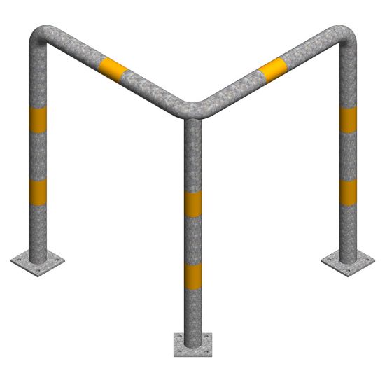 Protectie metalica pentru colt 800x800x800 mm din teava de 76.1x3 mm, Nentra, zincata, benzi galbene reflectorizante