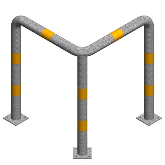 Protectie metalica pentru colt 800x800x800 mm din teava de 76.1x3 mm, Nentra, zincata, benzi galbene reflectorizante