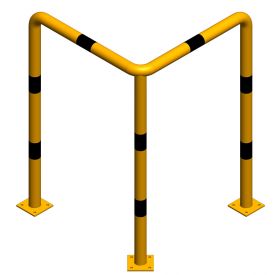 Protectii metalice / Coltare de protectie / Protectie metalica pentru colt 800x800x1200 mm din teava de 60.3x3 mm, Nentra, galbena, benzi negre reflectorizante