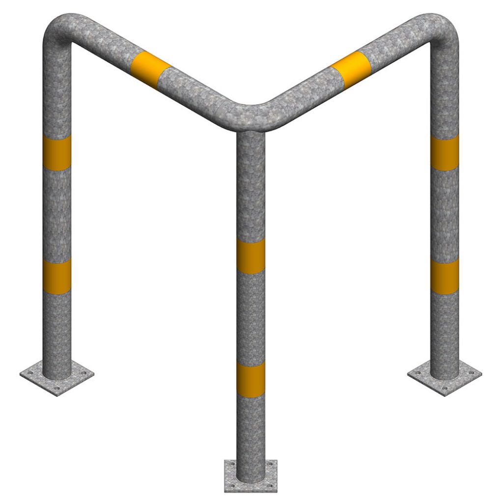 Protectie metalica pentru colt 800x800x1200 mm din teava de 76.1x3 mm, Nentra, zincata, benzi galbene reflectorizante