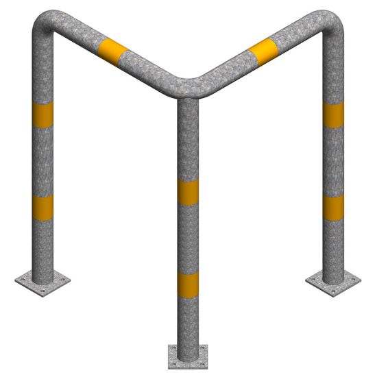 Protectii metalice / Coltare de protectie / Protectie metalica pentru colt 800x800x1200 mm din teava de 76.1x3 mm, Nentra, zincata, benzi galbene reflectorizante