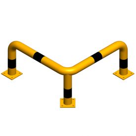 Protectii metalice / Coltare de protectie / Protectie metalica pentru colt 800x800x400 mm din teava de 76.1x3 mm, Nentra, galbena, benzi negre reflectorizante