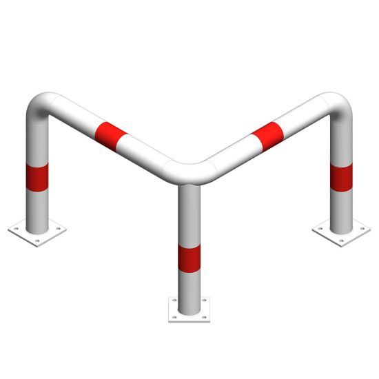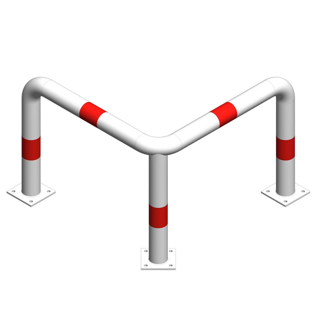 Protectie metalica pentru colt 800x800x800 mm din teava de 76.1x3 mm, Nentra, alba, benzi rosii reflectorizante