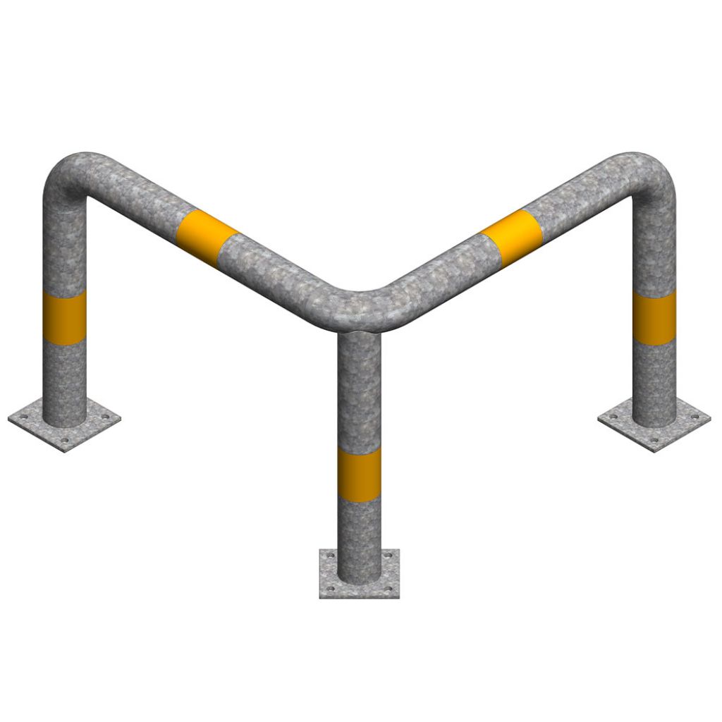 Protectie metalica pentru colt 800x800x800 mm din teava de 76.1x3 mm, Nentra, zincata, benzi galbene reflectorizante