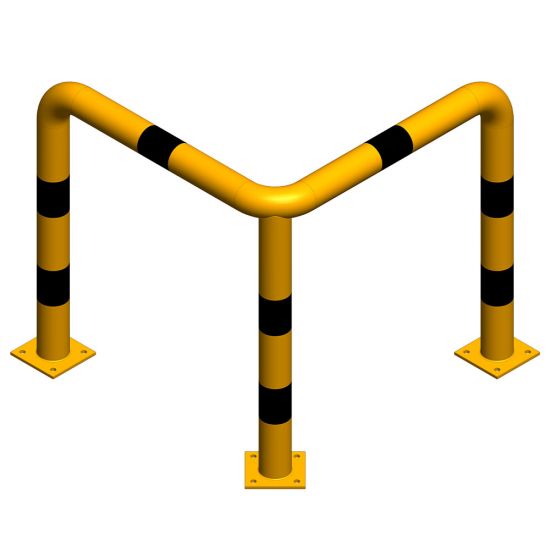 Protectii metalice / Coltare de protectie / Protectie metalica pentru colt 800x800x800 mm din teava de 76.1x3 mm, Nentra, galbena, benzi negre reflectorizante