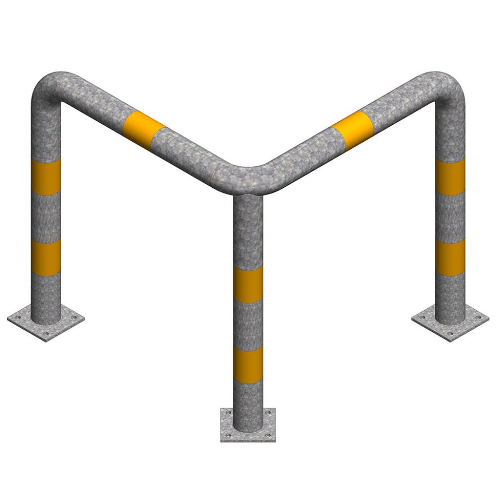 Protectie metalica pentru colt 800x800x800 mm din teava de 60.3x3 mm, Nentra, zincata, benzi galbene reflectorizante
