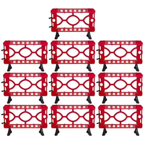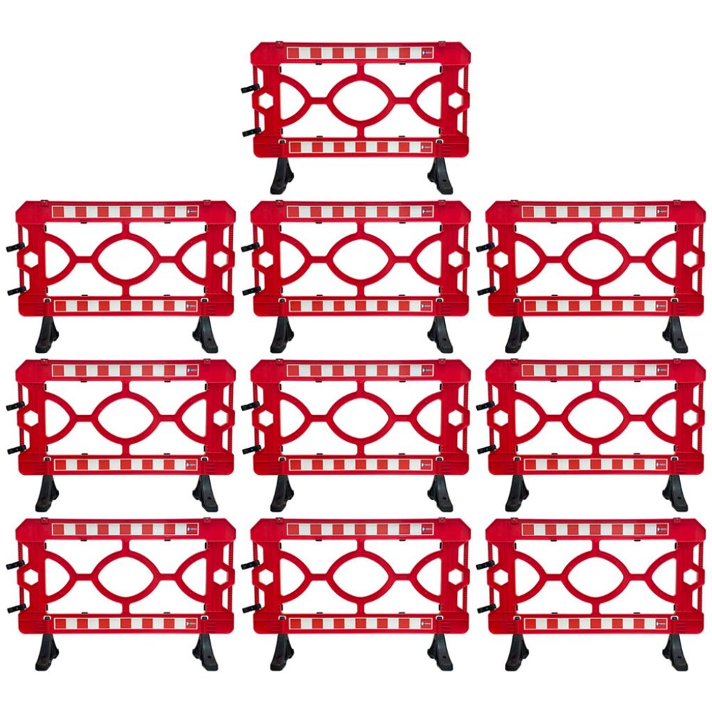 Bariera modulara pentru lucrari, Protrafic, 1500x1000 mm, rosie are o rezistentă sporită la soare sau ploaie, este ușor de transportat și îmbinat. Materialul din care sunt realizate, usurinta și practicitatea cu care sunt transportate și ridicate micsorează riscurile personalului și costurile.