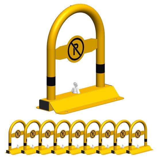 Blocatoare parcare / Blocatoare manuale / Set 10 blocatoare parcare tip arc Bolta Key model BPB-01 galben, Nentra, 350x450 mm, cheie, dibluri, holsuruburi