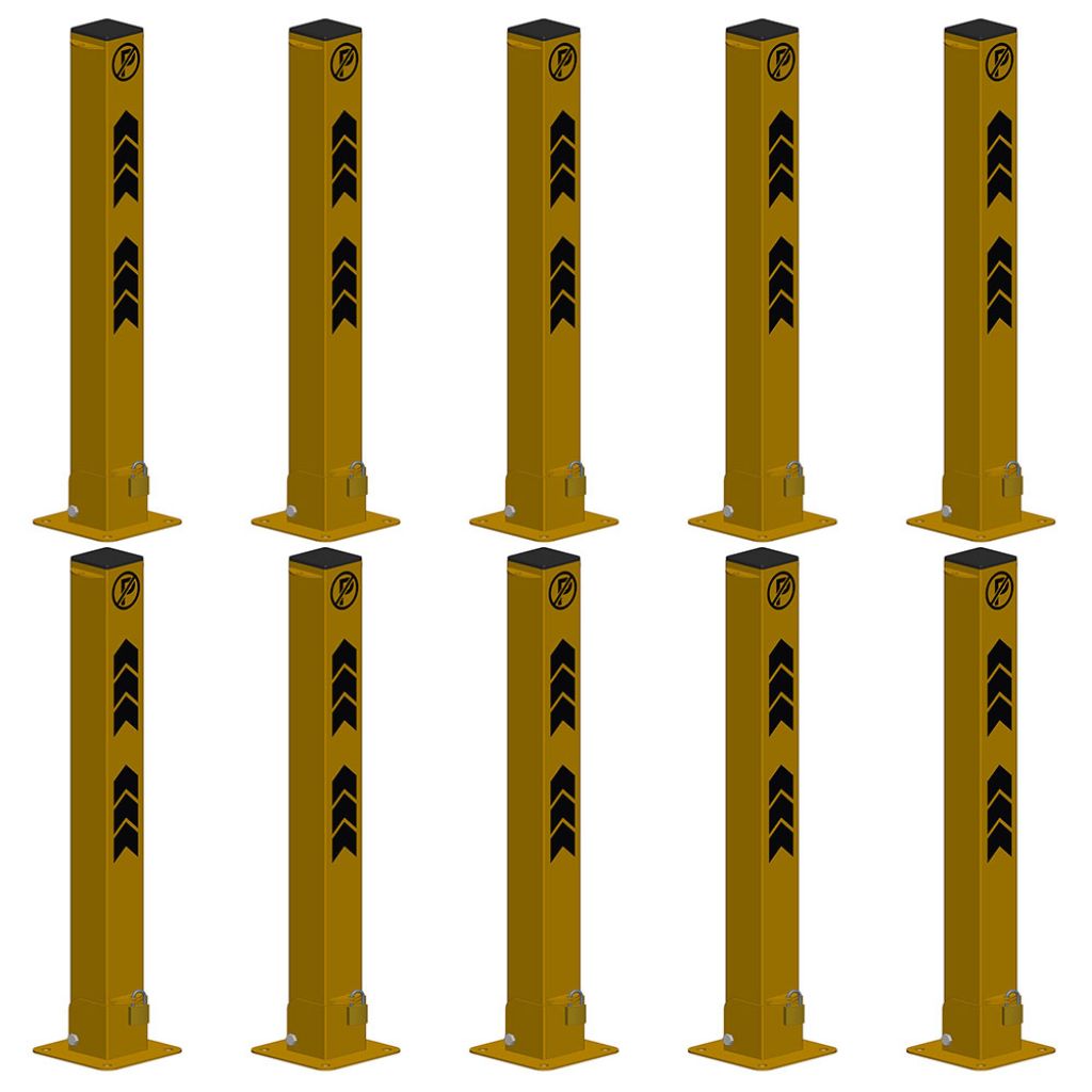 Blocatoare parcare / Blocatoare manuale / Set 10 blocatoare parcare tip Stalp Pat model BPS-02 galben, Nentra, 80x800 mm, lacat, dibluri, holsuruburi