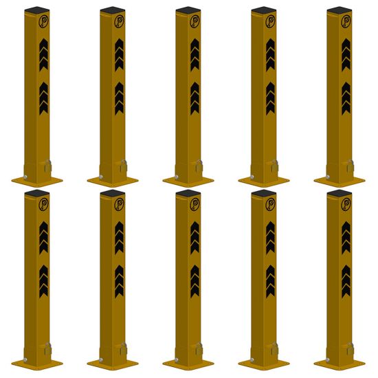 Set 10 blocatoare parcare tip Stalp Pat model BPS-02 galben, Nentra, 80x800 mm, lacat, dibluri, holsuruburi.