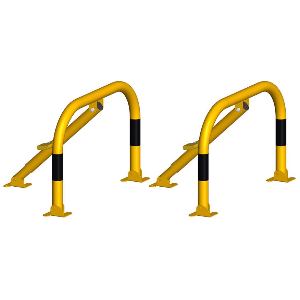 Set 2 blocatoare parcare tip arc Poarta model BPP-01 galben, Nentra, 600x400 mm, piston, lacat, dibluri, holsuruburi