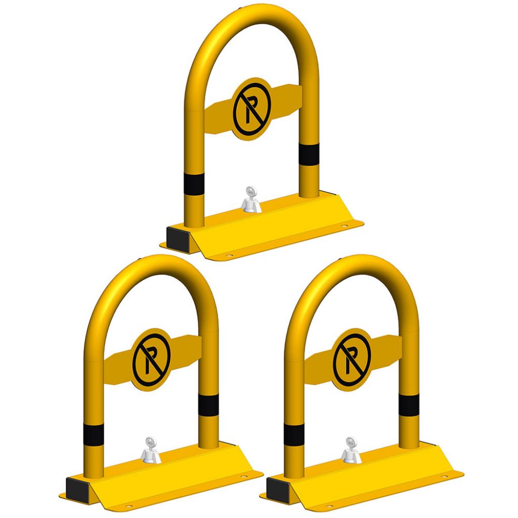 Blocator parcare tip arc Arcada model BPA-01 galben, Nentra, 350x500 mm, piston, lacat, dibluri, holsuruburi