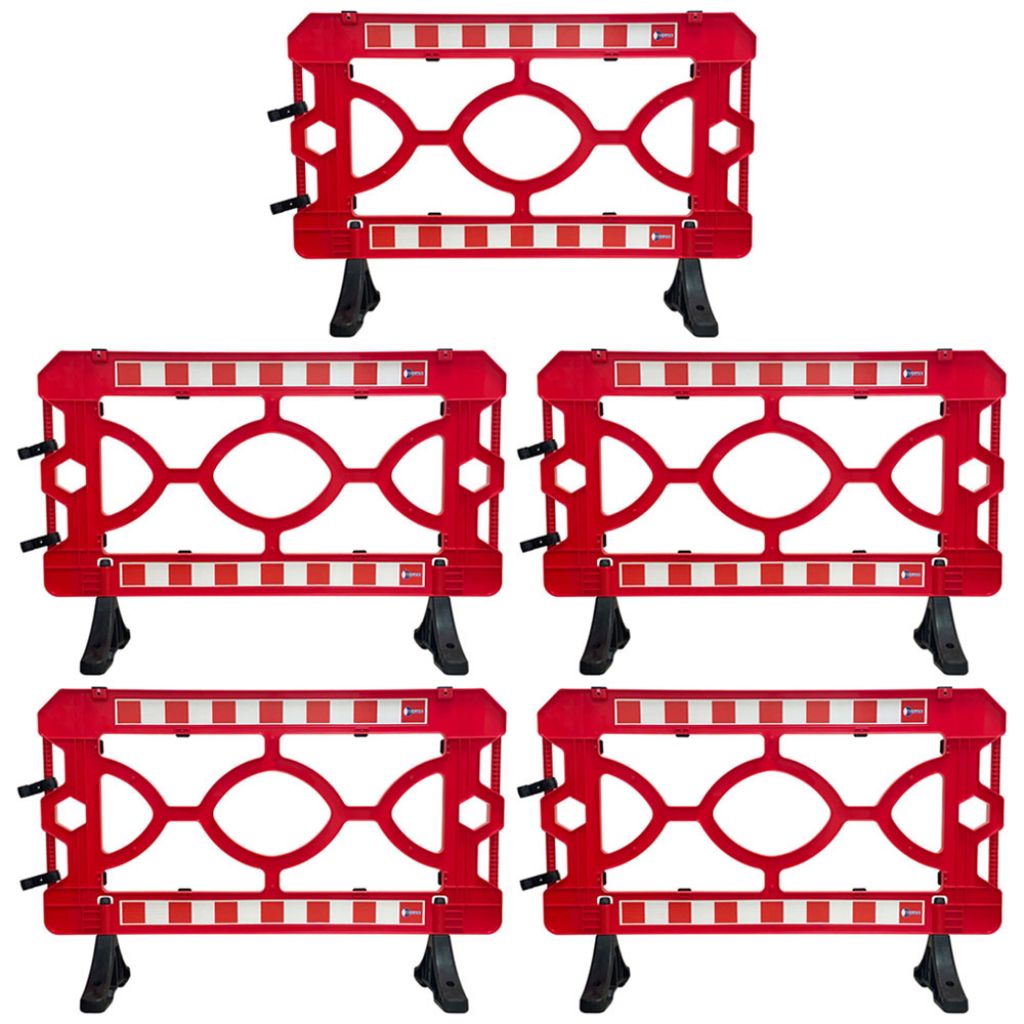 Bariera modulara pentru lucrari, Protrafic, 1500x1000 mm, rosie are o rezistentă sporită la soare sau ploaie, este ușor de transportat și îmbinat. Materialul din care sunt realizate, usurinta și practicitatea cu care sunt transportate și ridicate micsorează riscurile personalului și costurile.