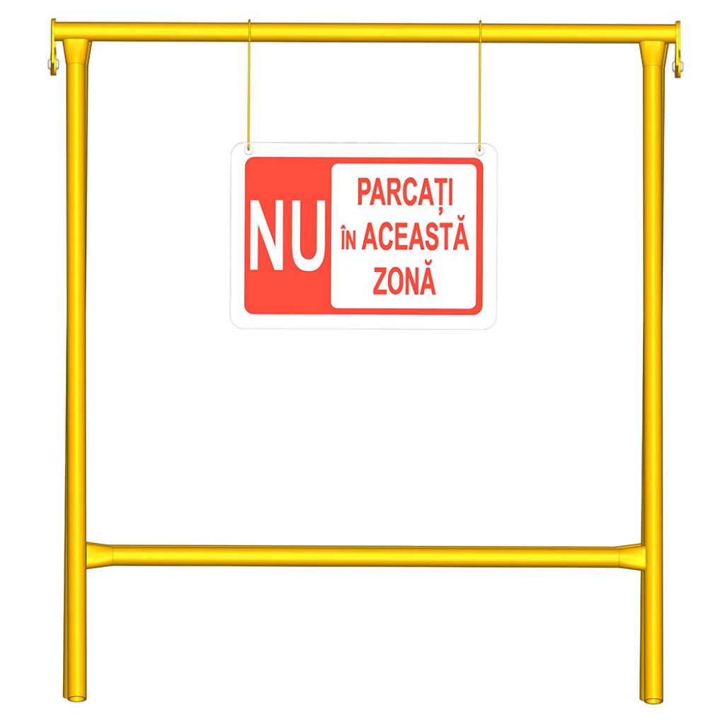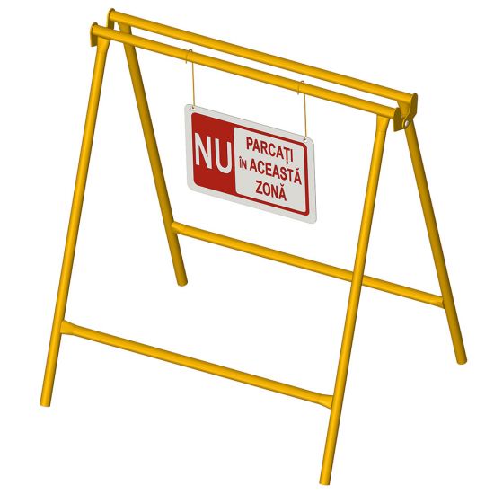 Set capra metalica mobila pentru blocare parcare model CPR-01 galben, Nentra, 710x800 mm si placuta indicatoare 200x300 mm, PVC, 3 mm