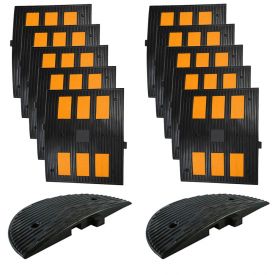 Set limitator de viteza din cauciuc cu pelicule reflectorizante galbene pentru strada de 6 metri compus din 10 limitatoare de viteza, dimensiune 600x500x45 mm, si 2 capace de limitator de viteza, dimensiune 600x300x45 mm, pentru un total de 5.6 metri.