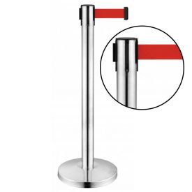 Stalp de ghidare si delimitare, cromat, cu banda retractabila, rosie, 2.5 metri.