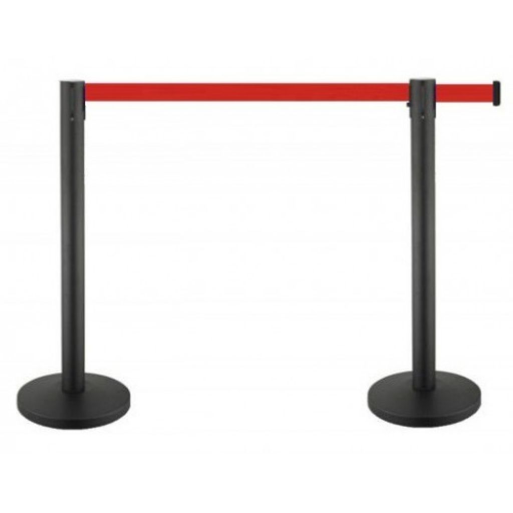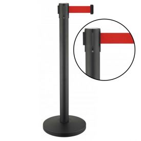 Stalp de ghidare si delimitare, negru, cu banda retractabila, rosie, 2.5 metri Stalp delimitare negru cu banda rosie folosit la delimitarea zonelor dintr-o anumita incepere unde nu este permisa intrare, la intrarea in restaurante sau hoteluri sau la diverse evenimente sau spectacole.