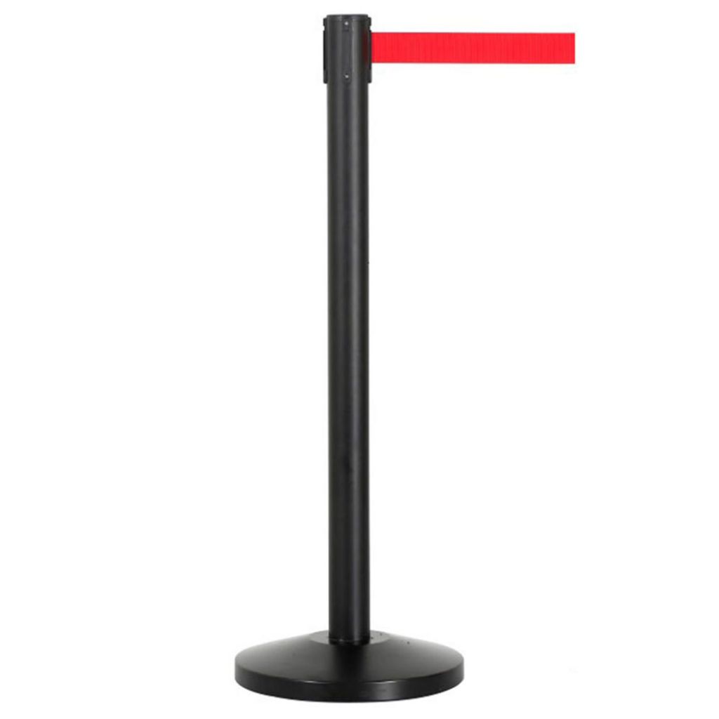 Stalp de ghidare si delimitare, cromat, cu banda retractabila, rosie, 2 metri