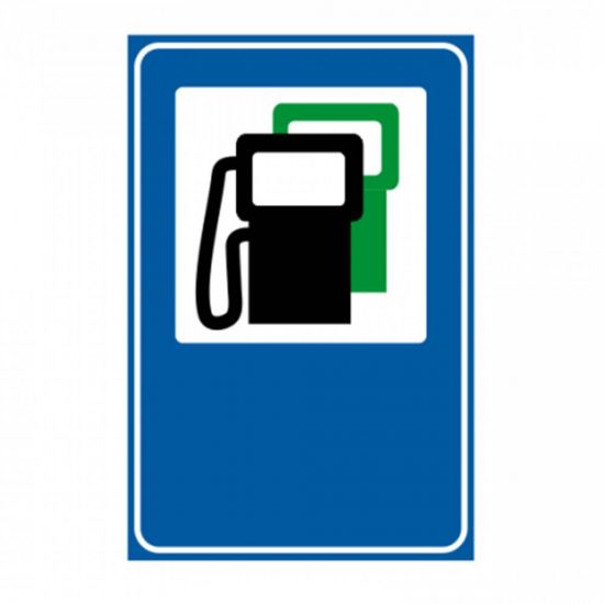 Indicatoare rutiere / Indicatoare de informare / Statie de alimentare cu carburanti, inclusiv benzina fara plumb, G22, indicator de informare, Protrafic, 650x500 mm, folie reflectorizanta clasa 1, otel vopsit