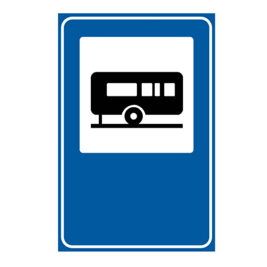 Indicatorul rutier din imaginea alăturată, se întâlnește în apropierea unui teren special amenajat pentru staționarea autovehiculelor și rulotelor.