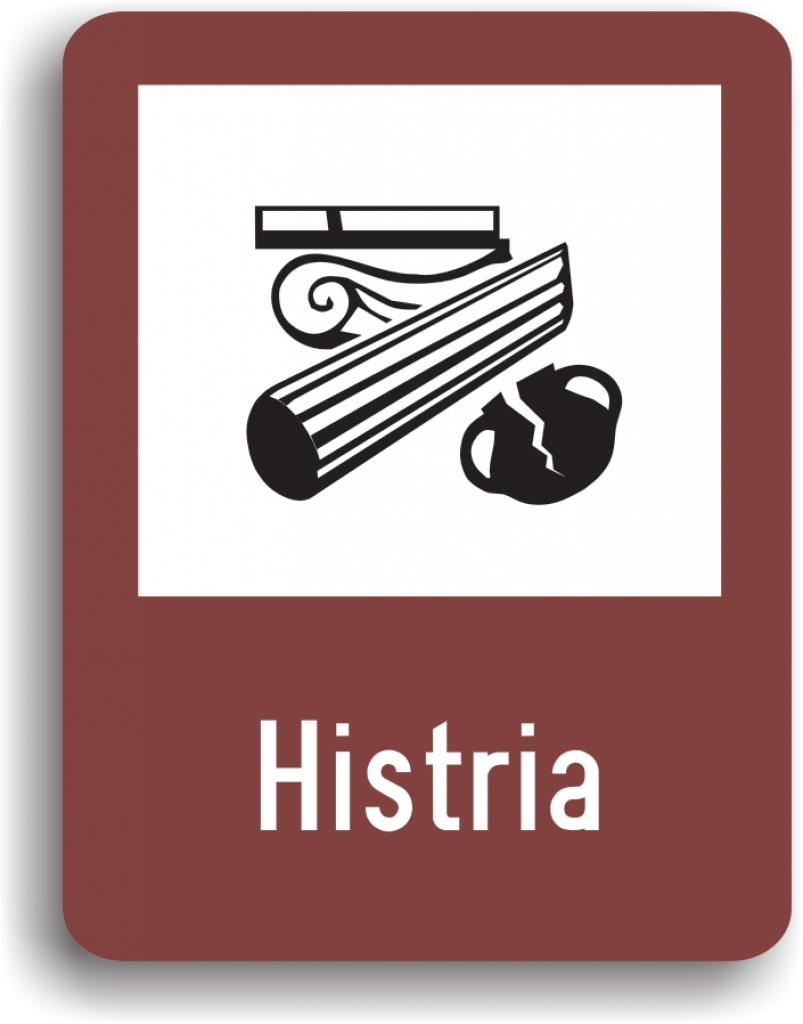 Acest indicator rutier de informare turistică, se întâlnește pe sectoarele de drum din apropierea unor vestigii istorice.