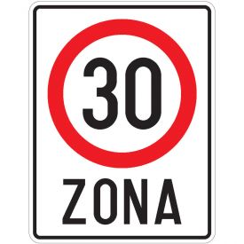 Zona cu viteza limitata la 30 km/h, C44, indicator de interzicere, Protrafic, 650x500 mm, folie reflectorizanta clasa 1, otel vopsit, indicator de interzicere sau restrictie este instalat in zona in care viteza de circulatie trebuie limitata la 30 km/h.